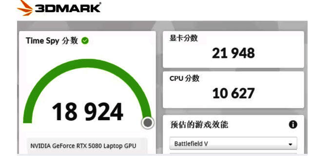 RTX 50系列游戏本预定于3月发售,近日B站用户“巅峰玩家DFWJ”发布了一张RTX 5080笔记本版的3DMark TimeSpy跑分,成绩不太理想,和桌面版的RTX 5080提升幅度同属于“卧龙凤雏”了。