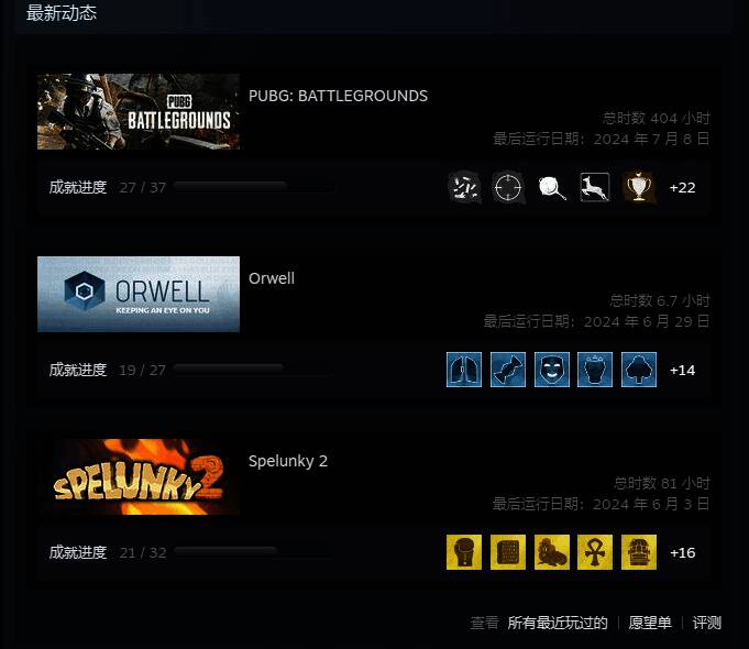 《绝地求生》,403.7个小时,最后一次游玩是2024年7月8日