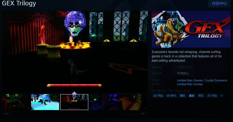 今日(2月7日),经典动作游戏《杰克龙蜥蜴三部曲/Gex Trilogy》Steam页面上线,年内发售,暂不支持中文,感兴趣的玩家可以点击此处进入商店页面。