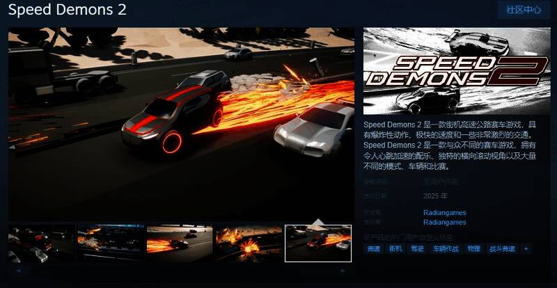 今日(2月7日),街机高速公路赛车游戏《Speed Demons 2》Steam页面上线,明年发售,游戏支持简繁体中文,感兴趣的玩家可以点击此处进入商店页面。