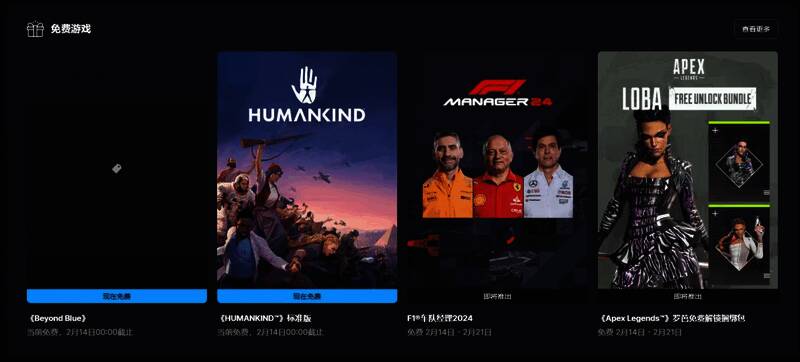 下周免费游戏为模拟游戏《F1车队经理2024》(F1 Manager 2024)和DLC《Apex英雄》罗芭免费解锁捆绑包,2月14日开始领取,2月21日结束。