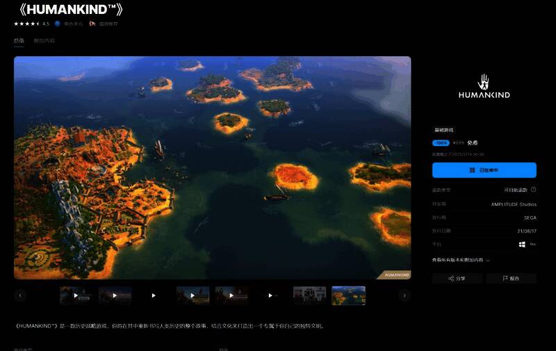 《人类》2021年8月发售,Epic国区标准版原价225元,支持简体中文,游戏在Steam上的评价为“褒贬不一”。