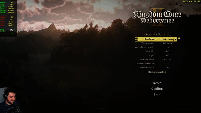 《天国:拯救2》是一个优化极好的游戏,以致于市面上最强GPU——RTX 5090甚至能以16K分辨率游玩,当然这需要开启DLSS。