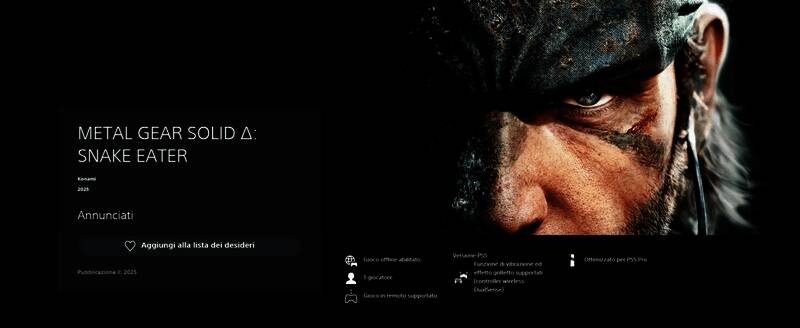 PlayStation商城《合金装备3:重制版》页面在今天获得了更新,显示该作将于2025年8月28日发售。
