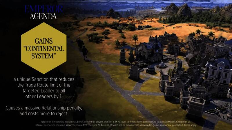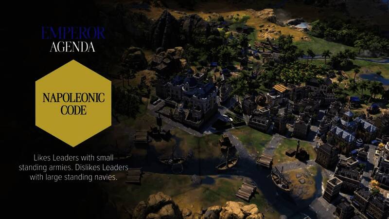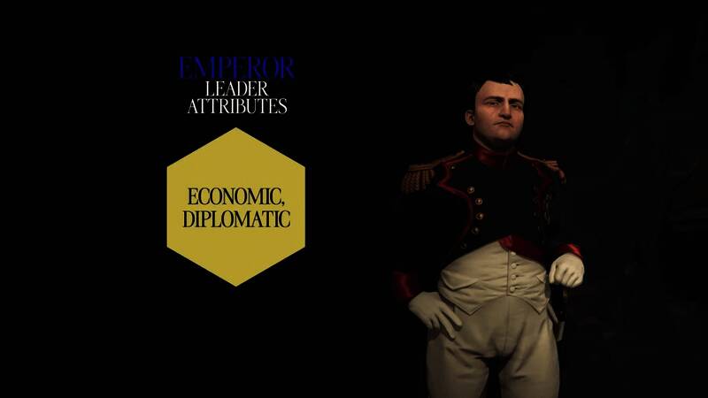 法兰西皇帝:获得一项独特的外交行动,可降低目标文明贸易路线的数量并引起大量不满。此外,每出现一位不友好或敌对的领袖,则每个时代金币增加。