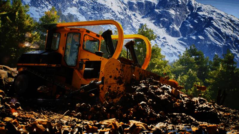 实时可编辑地形:在工作时塑造地面,砍树、挖掘,观察地面随着现实物理属性的变化而沉降。