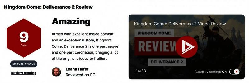 中世纪开放世界RPG游戏《天国:拯救2》媒体评测解禁,IGN评分9分,MTC均分87分。IGN直言这是一部堪比好莱坞大片的中世纪动作传奇。