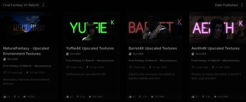 说到4K纹理,Romi还发布了针对克劳德、巴雷特、尤菲、蒂法和爱丽丝的4K Mod。这些MOD旨在改进主要角色。所以,你可能也想试试它们。