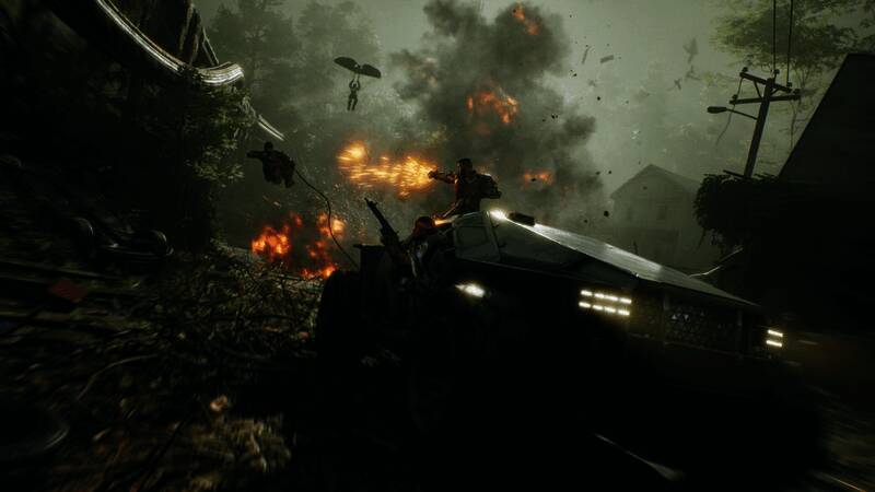 对于实际的射击体验,《Exoborne》感觉很棒。枪支有沉重而令人满意的后坐力,近战攻击确实能带来极大的冲击力,感觉很棒,而使用抓钩发射进行滑翔作为在地图上移动的一种手段,肯定比一直徒步要好得多。随机的天气事件会帮助或阻碍你的移动能力,龙卷风会让你在空中移动时获得巨大的提升,因为你可以随风向任何方向移动;而降雨则会让你的降落伞几乎毫无用处,迫使你每次试图在暴雨中部署它时都回到地面。为了真正展现后世界末日的背景,甚至还有火焰龙卷风,它们也会极大地提升你的移动能力,但如果你靠得太近,你就有被卷入火热的龙卷风并被杀死的风险。