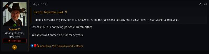 根据国外游戏论坛IconEra管理员爆料,SIE已不再计划将《恶魔之魂》和《GT赛车7》移植到PC平台。