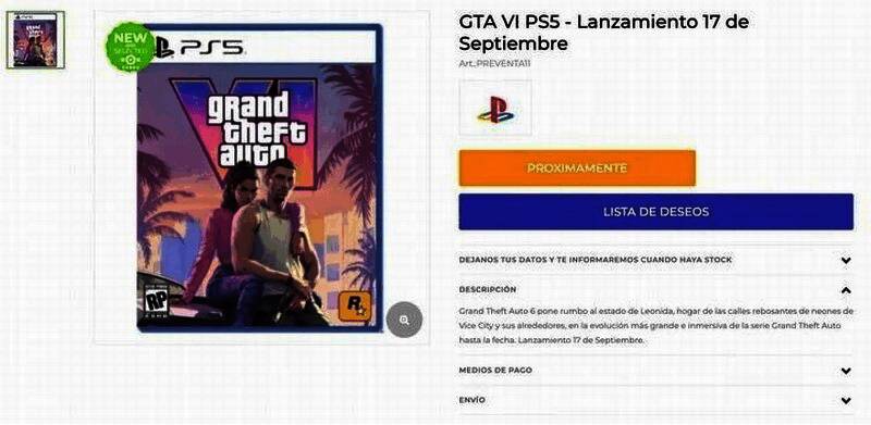 R星发布《GTA6》首个预告后,便没有再发布任何后续消息。最近南美一家游戏零售商网站泄露了可能的发售日期:2025年9月17日,这天也是《给他爱5》发售12周年的纪念日。