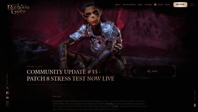 《博德之门3》的8号补丁压力测试:注册网页