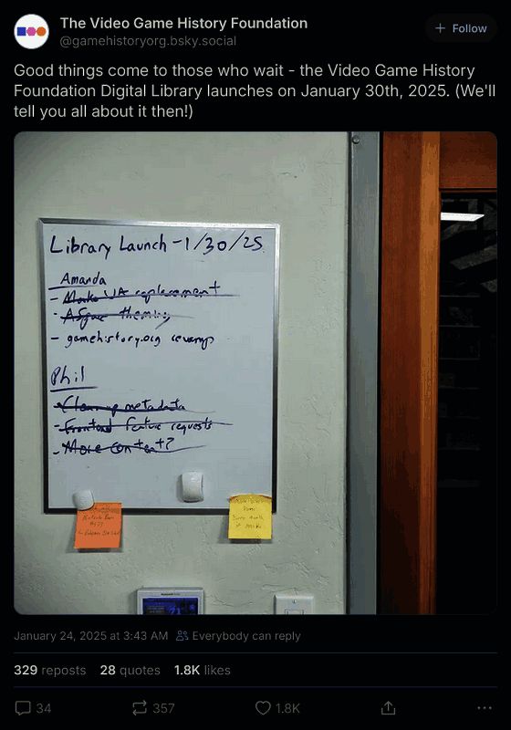 电子游戏历史基金会(VideoGame History Foundation)是游戏行业中保护其过去的组织之一。该组织日前在社交媒体 Bluesky 上宣布,将于 1 月 30 日开启其数字图书馆。