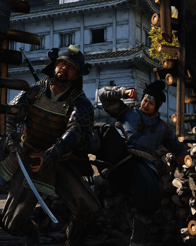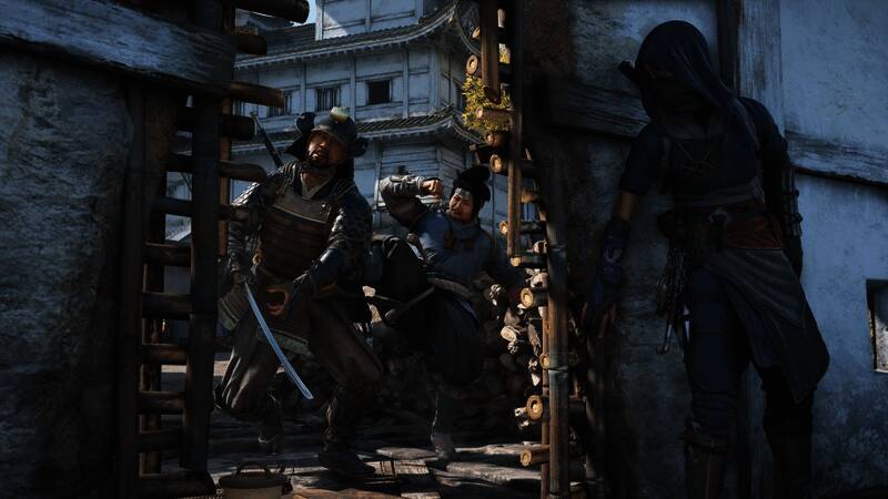 《刺客信条:影》更多新截图公布,其中一张展示了一个性别不明、但身材活像一只非常胖的卡通兔子的日本武士。他/她正在从背后用力踢着日本男杂兵。