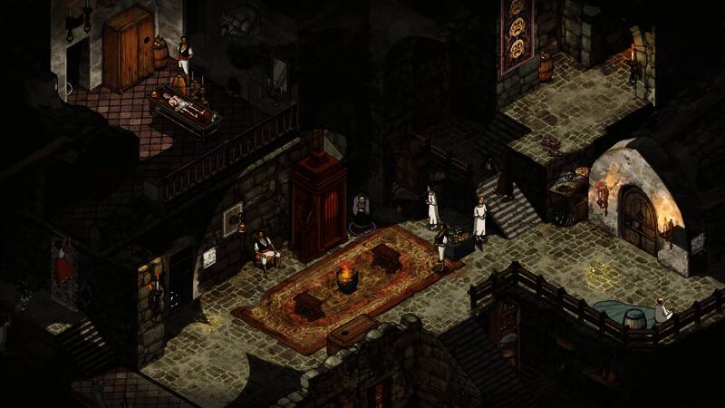 游戏采用了等距透视的视角,完美地塑造出了引人注目的视觉效果,在这独特的视角下玩家可以观察到画面中每一个微小的细节,仿佛置身于戈雅绘制的一幅幅栩栩如生的油画中展开修道院探险。