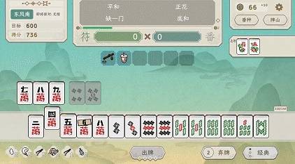 同时,《青天井》还十分友好地将麻将玩法进一步拆解重构。原本要一气呵成凑出14张成牌,在游戏中则将其拆分成了4个小回合。玩家只需要通过摸牌与弃牌,在每回合各打出一组“3+2”组合,就能拼凑出自己的成牌牌型,并通过累计符番倍率疯狂上分。