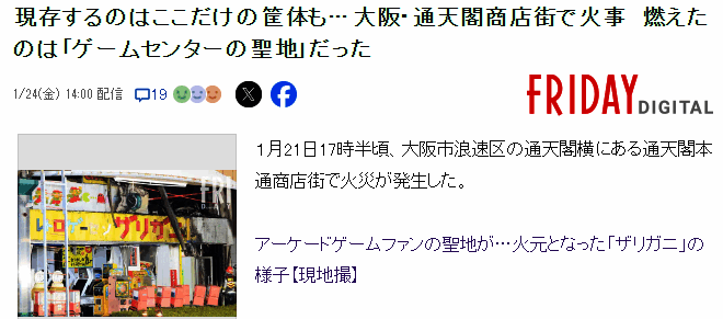 被誉为当下没落街机时代最后的少数圣地之一,大阪一家位于通天阁商店街的著名街机厅21日惨遭大火,5层建筑损毁殆尽,更重要的是店内多台唯一存世超经典街机竟然以这种方式陨灭。