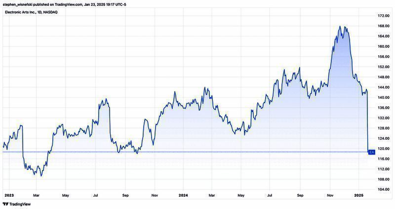 EA 股价下跌 17%,导致公司市值缩水约 60 亿美元,并且目前公司股价处于过去 12 个月以来的最低点。