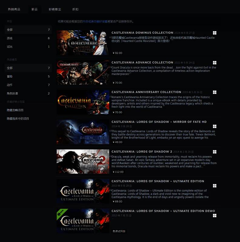 Konami旗下多个游戏系列继续解锁国区,最新解禁的系列有《寂静岭2:重制版》、《合金装备:大师合集 Vol.》、《游戏王》《恶魔城》系列部分游戏。实际上,自去年年底时Konami就开始解锁了一部分游戏的国区。