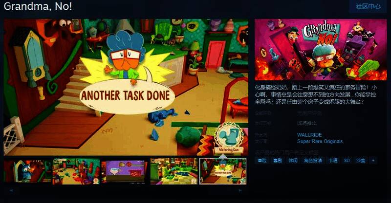 今日(1月22日),爆笑物理互动冒险游戏《Grandma, No!》Steam页面开放,发售日待定,游戏支持简繁体中文,感兴趣的玩家可以点击此处进入商店页面。