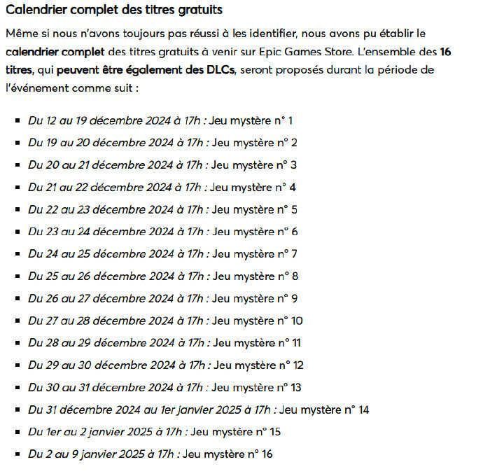 然后从12月19日开始,Epic将连续15天每天送一个“神秘游戏”,这个期间每个游戏领取时间只限24小时。不过,不包括最后一个游戏,最后一个游戏的领取时间也是一个星期,也就是1月2日至9日。