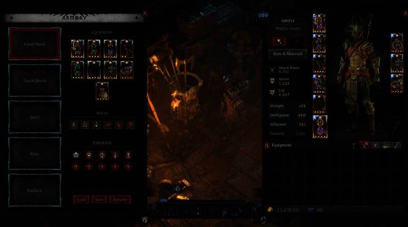 在配置档介面可以轻松检视角色配置所使用的装备、技能、选用的颠峰节点和雕纹。备註:变更为使用不同颠峰配置的配置档栏位时,无须消耗金币。