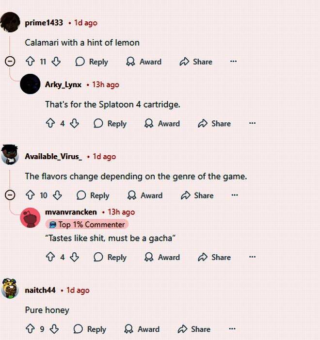 关于Switch 2的游戏卡带会使用何种“风味”,玩家们展开了丰富的猜测。从巧克力味、奶油味等相对温和的口味,到柠檬鱿鱼味等猎奇的尝试,还有人希望卡带口味会根据游戏类型而变化。