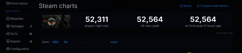 《真三国无双:起源》在昨天正式解锁发售,Steam国区售价349元。据SteamDB统计,该作首发Steam同时在线峰值为52564人,当前在线玩家52311人,尚有一定的增长空间,但不大。