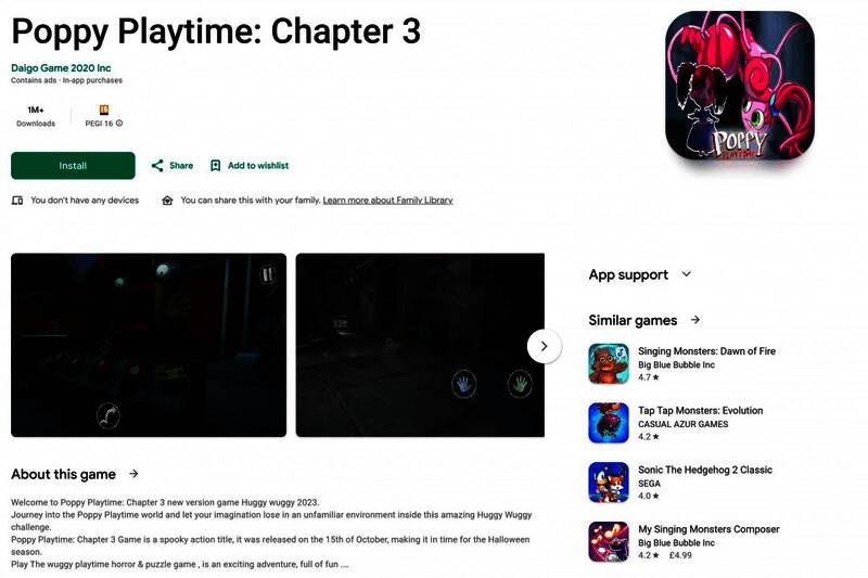 这两款仿冒游戏仍能在谷歌应用商店中找到。根据谷歌应用商店的统计数据,仿冒的《波比的游戏时间:第3章》应用下载量已超过100万次,《波比的游戏时间:第4章》下载量超过5万次。