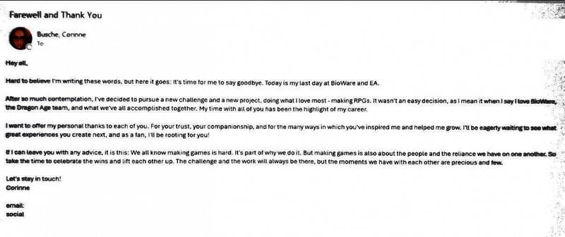 消息来自于Corinne Busche一封泄露的邮件,邮件显示Corinne将前往一个不同的项目,将继续专注于制作RPG。