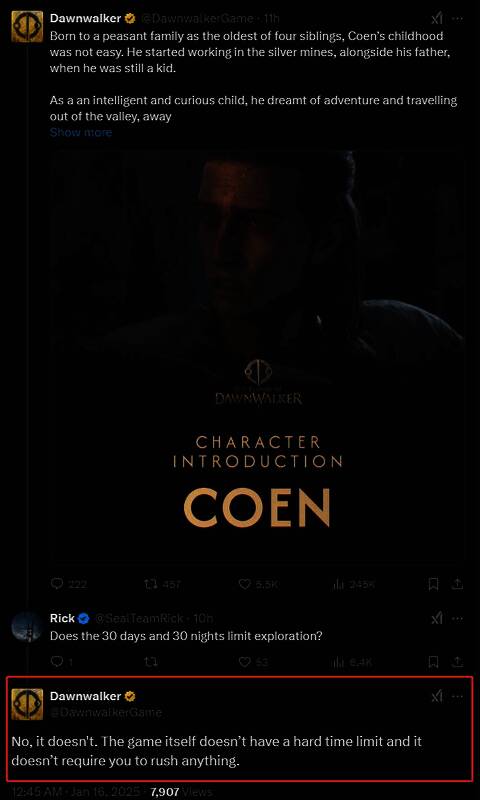 这套系统引起了部分玩家的关注,面对玩家的疑问,《黎明行者之血》官方在推特上明确回复:“游戏本身没有严格的时间限制,也不要求你急于完成任何事情。”