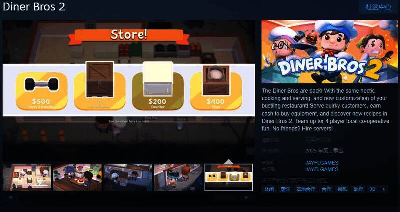 今日(1月16日),烹饪模拟游戏《Diner Bros 2》Steam页面开放,2025年第二季度发售,暂不支持中文,感兴趣的玩家可以点击此处进入商店页面。