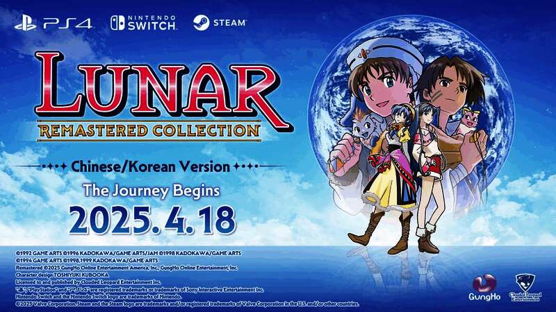 云豹娱乐股份有限公司(董事长兼社长:陈 云云)今日宣布,由GungHo Online Entertainment, Inc.(董事长兼社长:森下 一喜)旗下子公司,GungHo Online Entertainment America, Inc.进行移植开发,收录日式RPG两款经典名作《LUNAR: Silver Star Story》以及《LUNAR: Eternal Blue》的《LUNAR Remastered Collection(银河之星 经典合辑)》(支持平台:Nintendo Switch™、PlayStation®4 (支持PlayStation®5 向后兼容)、Steam®)的简体中文版决定将于2025年4月18日(星期五)与全球同步上市。