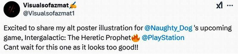 之前顽皮狗公布了新作《星际:异端先知》,光头女主让人印象深刻。近日推主Visualsofazmat1分享了他自制的《星际:异端先知》海报,一起来欣赏下吧!
