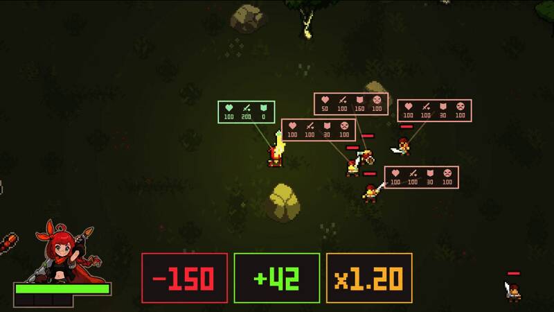 本作中的玩家作为被传说之剑选中的调试英雄,你获得了操控角色变量的能力。利用这股强大的力量,突破挡在你面前的地下城,打倒魔王吧。