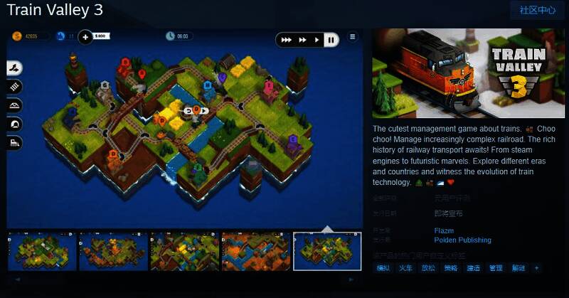 今日(1月15日),轨道策略解谜游戏《火车山谷3》Steam页面开放,发售日待定,暂不支持中文,感兴趣的玩家可以点击此处进入商店页面。