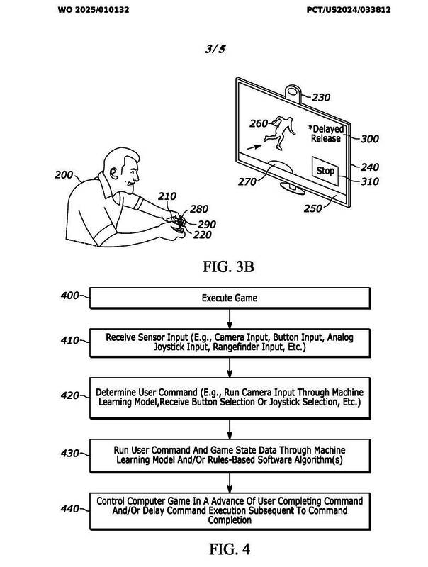 而另外一项专利则用到了人工智能技术,该专利涉及使用摄像头观察玩家和控制器,记录动作并让AI预测接下来会输入的按键,以及使用不完整的控制器动作,让AI猜测玩家的意图的功能。本质上,这有助于减少延迟(玩家输入和游戏内动作之间的延迟,这可能是在线游戏经常遇到的一个问题)。