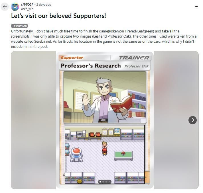 此外“asch_win”还发现游戏中的训练师卡牌背景,也一一对应了他们在《宝可梦 火红·叶绿》等游戏中登场的位置,例如大木博士就在他的研究所内。