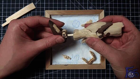 ·Fairy of sawdust的油管频道是这位高玩的技艺秀场,通过雕刻制作的木制钢普拉除了材质,整体质感甚至比原版还好,重点是也可以多关节活动,简直堪称人工版精密机器人。