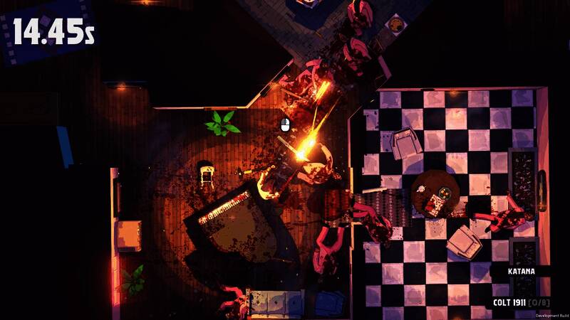 本作中玩家将在复古的1970年代酒店中执行超暴力突袭。掌握精确度和时机,在无情的俯视近战中消灭坏人。每次游戏玩法都不尽相同,拥有可解锁的游戏玩法变换器和随机生成的房间。