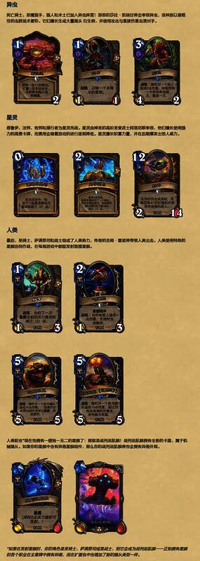 本次联动的迷你系列分为三个标志性的《星际争霸》阵营:异虫,星灵以及人类,其中异虫阵营包括职业死亡骑士,恶魔猎手,猎人和术士;星灵阵营包括职业德鲁伊,法师,牧师和潜行者;人类阵营包括职业圣骑士,萨满祭司和战士。多张新卡与这些阵营一同公布。