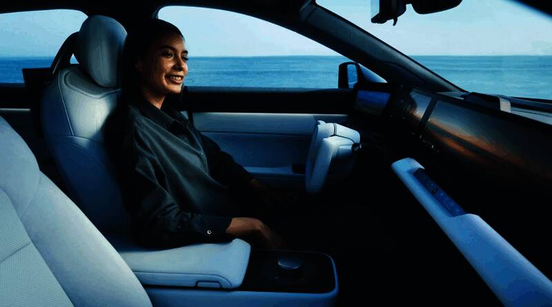 AFEELA 1引擎盖前的头灯部位配有“Micro LED 车头显示解决方案”,据称由面板大厂友达携手索尼开发,除了能显试资讯,还能让车主自行设计风格化标志,强化车内主题与车外世界的连结。