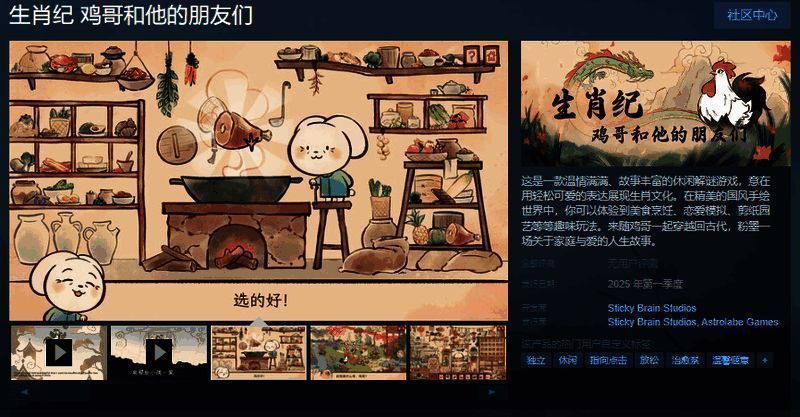 今日(1月10日),国风手绘解谜游戏《生肖纪鸡哥和他的朋友们》公开,游戏支持简繁体中文,发售日待定,感兴趣的玩家可以点击此处进入商店页面。