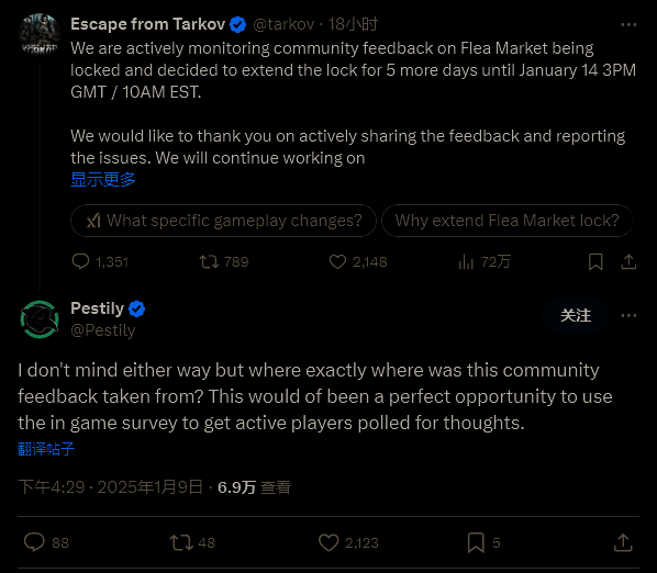 开发者确认,他们正在“积极监测《逃离塔科夫》的社区反馈”,并“将在未来几天继续致力于技术修复和平衡更改”。