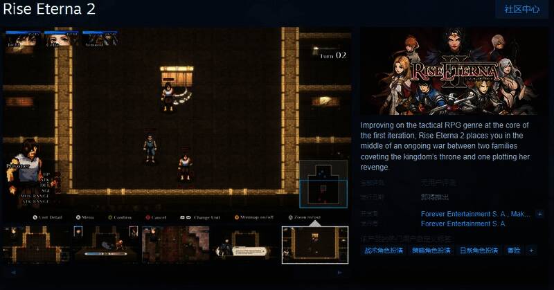 今日(1月10日),战术角色扮演游戏《Rise Eterna 2》Steam页面开放,发售日待定,游戏暂不支持简体中文,感兴趣的玩家可以点击此处进入商店页面。