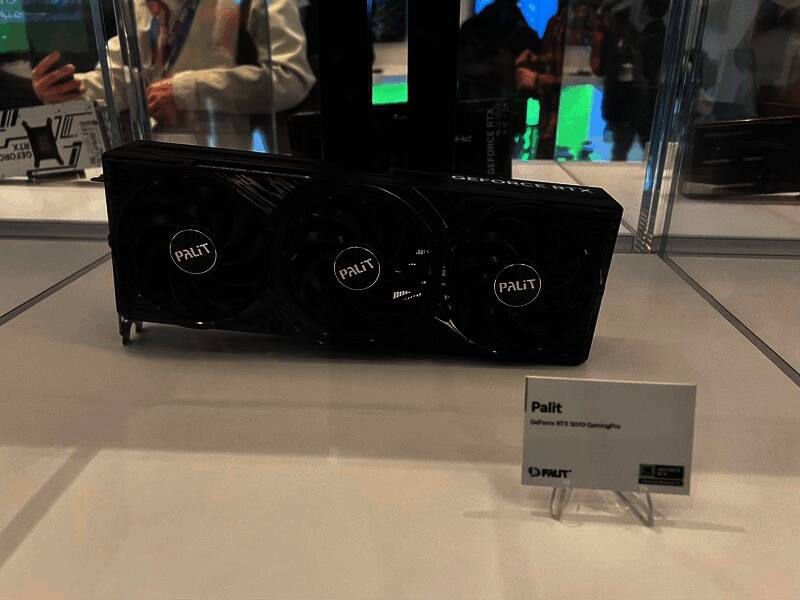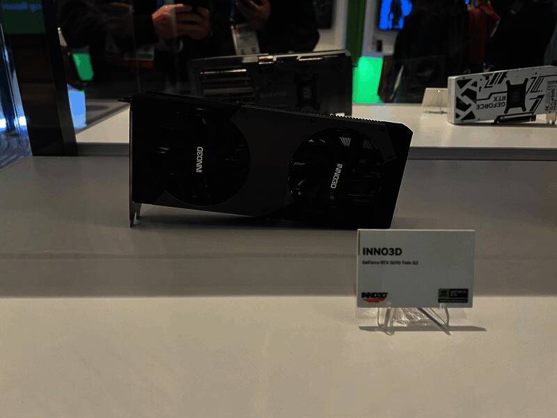 在英伟达展区,还展示了多家AIC合作伙伴厂商的显卡。虽然没有采用像Double Flow Through设计这样激进的设计,但仍然可以充分感受到各家厂商的风格差异。