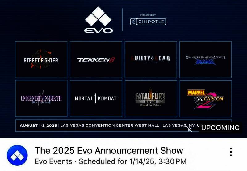 全球最大的格斗游戏锦标赛EVO计划于下周1月15日公布EVO 2025的完整游戏阵容,不过看起来该名单已经通过YouTube直播预告的缩略图提前揭露了,EVO 2025将总共包含8款游戏,具体名单如下:
