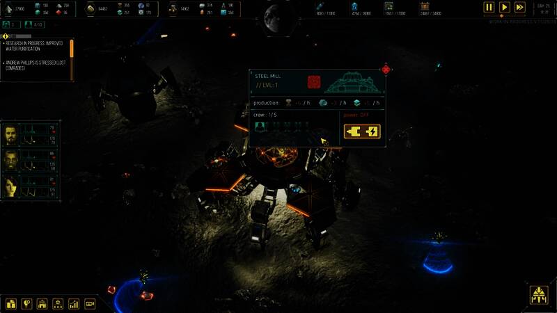 多功能机甲是你的生存工具;在上面建造新建筑,研究新科技,强化队员能力,并借助它穿越月表。开发全新的机械设备原型,强化矿物开采能力;或者专注于提升车队的移动速度,躲避太阳的致命追捕。不要在一个地方逗留太久。