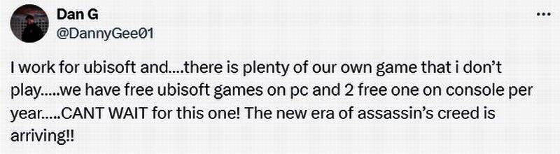 育碧首席动画师Dan G表示,《刺客信条:影》对工作室每个人来说都是一件大事,他打算玩玩这款游戏。他还发布了大胆声明:“《刺客信条》的新纪元即将到来!”