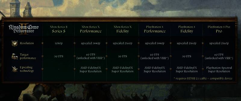 战马工作室发布了《天国:拯救2》在不同主机上的分辨率和目标帧数,PS5 Pro的目标为4K/60FPS。
